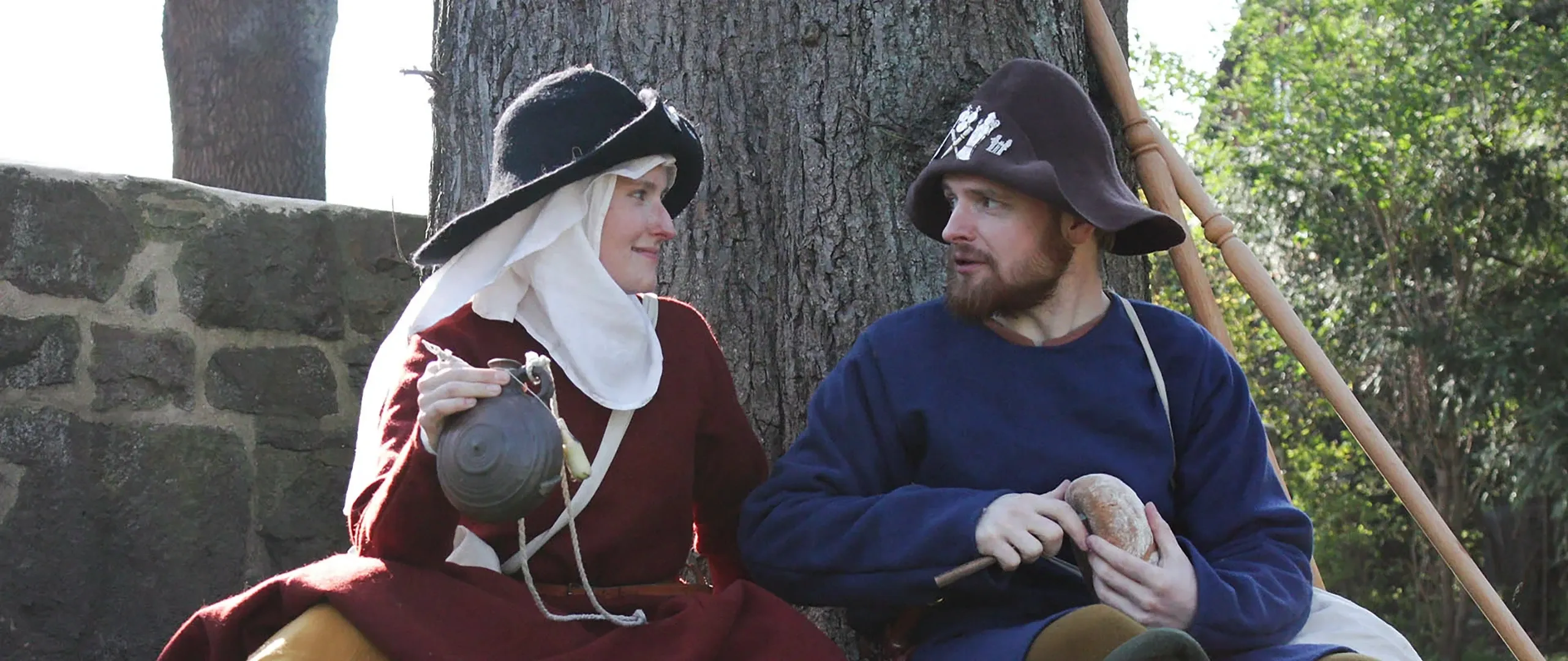 Philipp und Mai-Britt: Ganz ursprünglich, als wir anfingen, gemeinsam das „Mittelalter“ darstellerisch unsicher zu machen, war unser Richtwert gar nicht das 15. Jahrhundert, und auch nicht das Bürgertum – nicht einmal die Vermittlung war zu dem Zeitpunkt im Fokus, auch wenn sowohl Vermittlung als auch Bürgertum des 15. Jahrhunderts sehr schnell unser Go-To wurden.