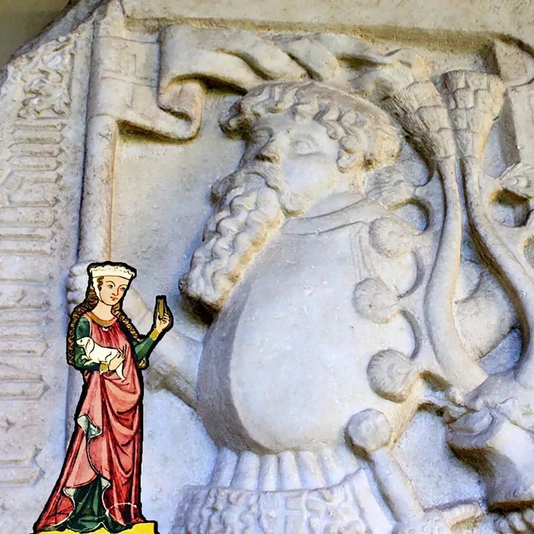 Minnetoren oder auch Frauensklaven sind ein im Mittelalter in der Literatur beliebtes Motiv, das auch in der bildenden Kunst gerne dargestellt wird. Zu den wohl bekanntesten Vertretern gehört der hier abgebildete Aristoteles, der von der klugen Phyllis geritten wird. Obwohl Aristoteles als Lehrer Alexanders des Großen als ungemein gebildeter Mann gilt, lässt er sich von der schönen Phyllis um den Verstand bringen und unterwirft sich ihr vor aller Augen. Das Medaillon mit der Abbildung ist eines von vielen und gehört zum sogenannten Maltererteppich, ein möglicherweise für eine Klosterbank gewebter Zierbehang von etwa 1320/30. Auch die Geschichten von Samson und Delilah (Bibel), von Iwein und Laudine (Hartmanns von Aue ›Iwein‹ [Artusroman]) sowie Vergil im Korb (Sagen) finden sich in den Darstellungen der Minnetoren auf dem Teppich).