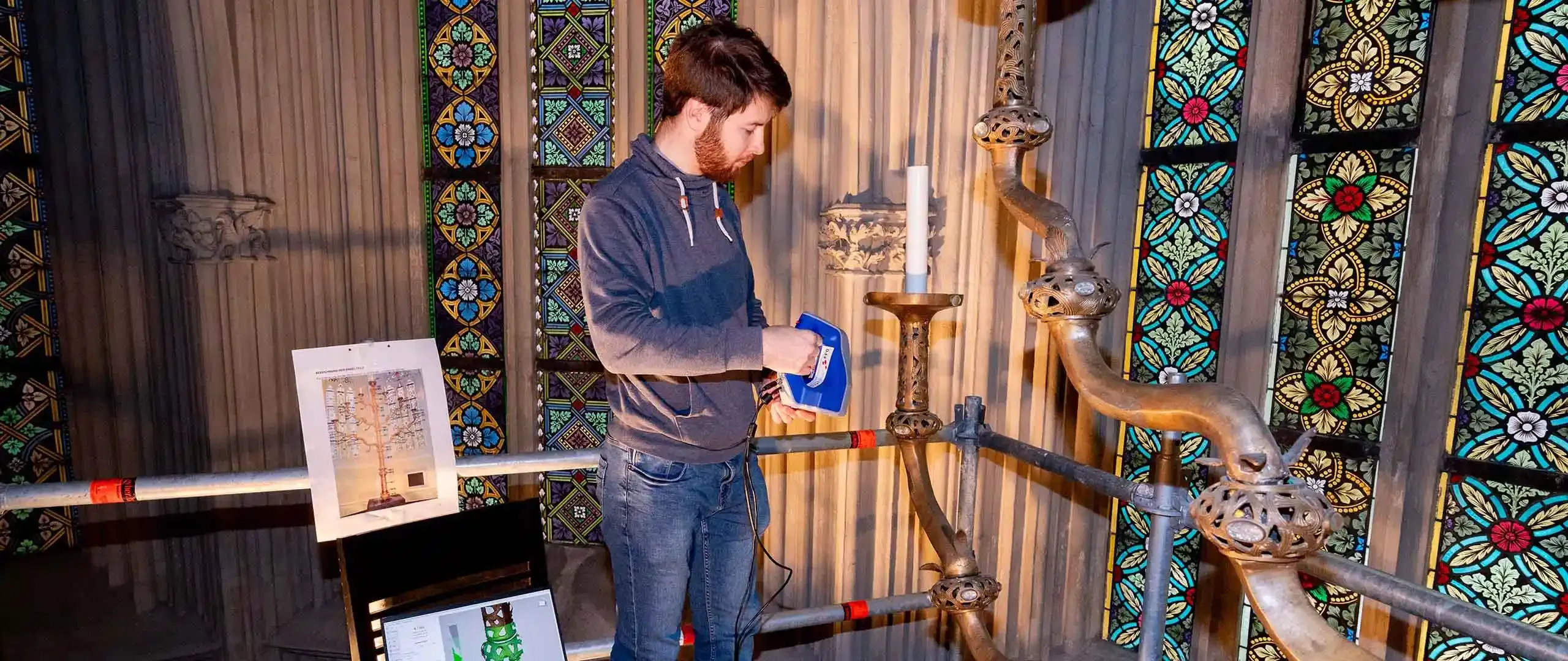 Im Rahmen dieses Projekts geht ein transdisziplinäres Team internationaler Forscher:innen den ungeklärten Fragen zur Herstellung beziehungsweise des Herstellungsortes, der Herkunft des Metalls und den mittelalterlichen Handelsnetzwerken nach. Zum Einsatz kommen u. a.: Röntgenfluoreszenzanalyse, 3D-Laserscanning, Mikroskopie und Endoskopie, um naturwissenschaftliche Erkenntnisse zu gewinnen.