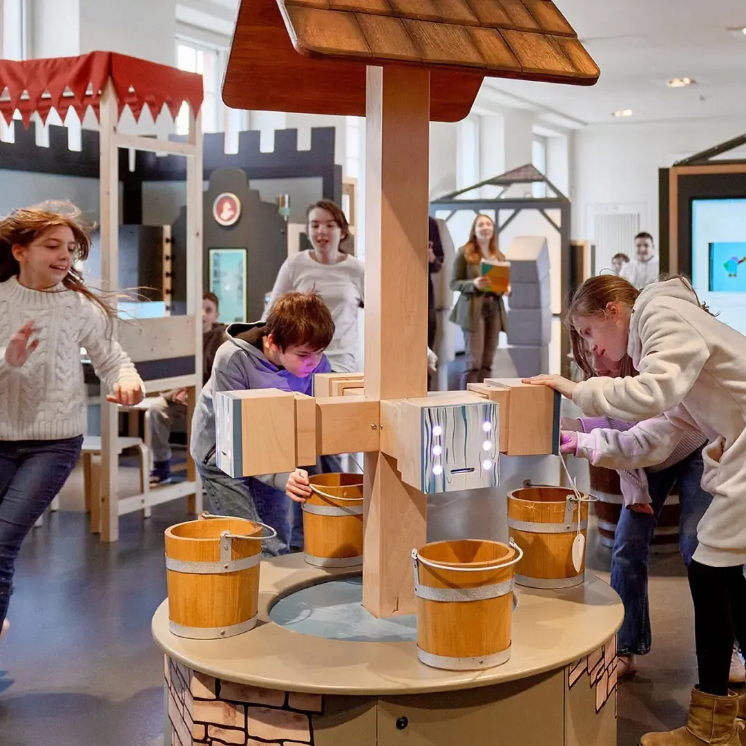 „Damals 1410“, die neue Ausstellung im Jungen Museum Frankfurt, führt vom 28. März 2026 bis 7. Februar 2027 spielerisch durch die digitale Welt. Die Ausstellung, ein Game im Raum, beginnt mit einer Zeitreise in eine mittelalterlich anmutende Stadt. Alle Besucher*innen erhalten eine eigene Spielkarte mit persönlichem Code. Damit können sie sich an einer der 25 Hands-on Stationen einloggen und das Spiel kann starten.